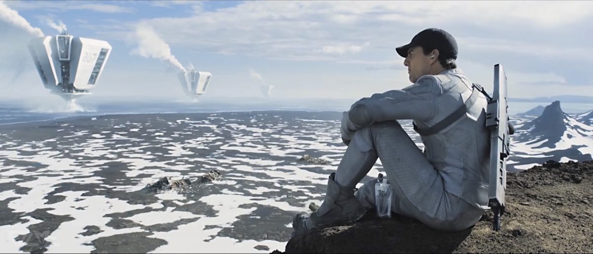 Grob gesagt geht es in diesem Film darum, dass die Menschheit in die Wolken flüchten musste um den Aliens auf der verfallenen Erde zu entkommen. Jack (Tom Cruise) hat den Auftrag auf die Erde zurück zu kehren und die dort hausende außerirdische Lebensform zu zerstören.
